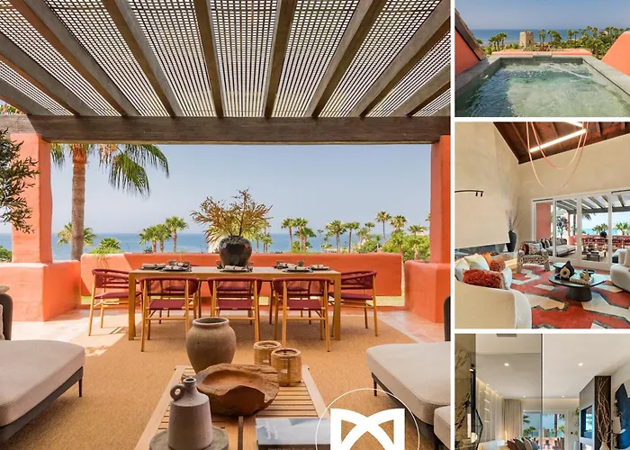 Esta villa frente a la playa, Vacation Marbella I The Signature Penthouse, Sea View, Sauna, Private Heated Jacuzzi, Cutting-Edge Amenities Estepona, está situada a unos minutos a pie de la Playa Guadalmansa y cuenta con una piscina en la azotea y una terraza para disfrutar de una estancia relajante. Los huéspedes pueden beneficiarse de solárium, sauna y piscina cubierta mientras se alojan a tan solo 9 minutos a pie de il Palazzo Arcivescovile.